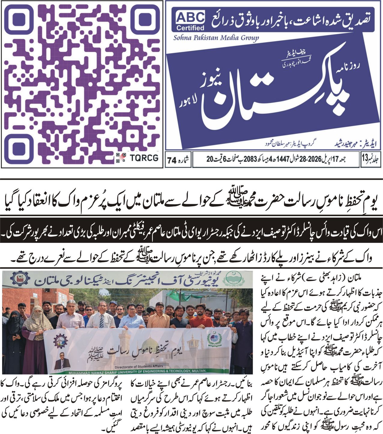 I invite students, faculty, industry partners, and stakeholders to join us in this journey of growth and transformation. Together, we will build an institution that stands as a beacon of excellence for South Punjab and beyond.