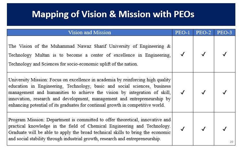Department is committed to offer theoretical, innovative and practical knowledge in the field of Chemical Engineering and Technology. Graduate will be able to apply the broad technical skills to bring the economic and social stability through industrial growth, research and entrepreneurship